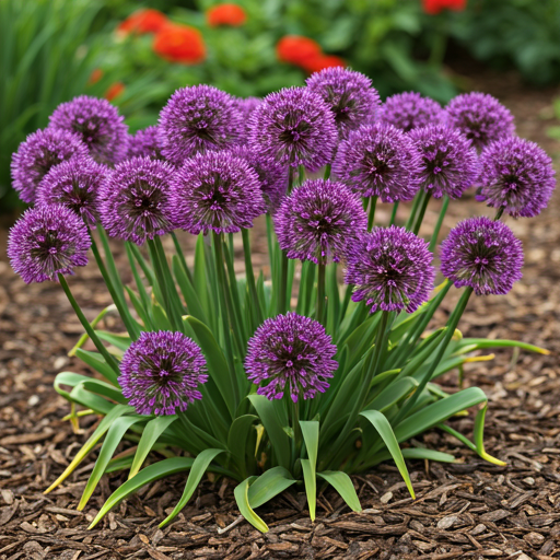 Triple-shredded hardwood or natural cedar mulch — 2–3 inches deep on top of cleaned, weeded beds. Regulates soil temperature, retains moisture in July heat, suppresses weeds, and gives the beds the ‘just-finished’ look that lasts months.